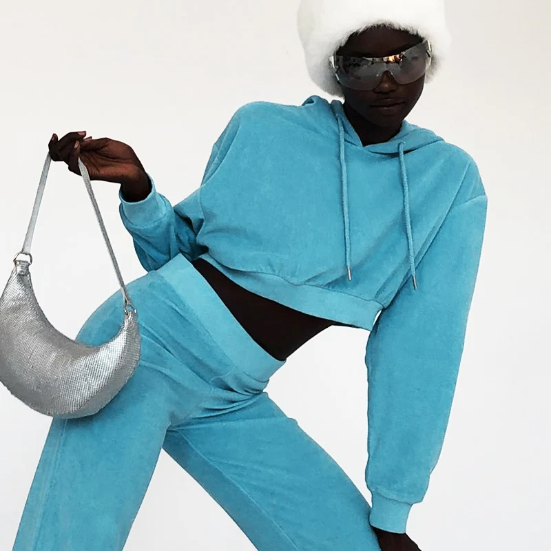 Tracksuit and chill with our ultimate collection of laidback but stylish womens tracksuits. NIGHT SKY BLUE VELOUR DIAMANTE TRACKSUIT BOTTOM. Two Piece Outfits for Women Sweatsuits - Velour Tracksuit Set Long Sleeve Zip Crop Tops and Wide Leg Pants Club Outfits.