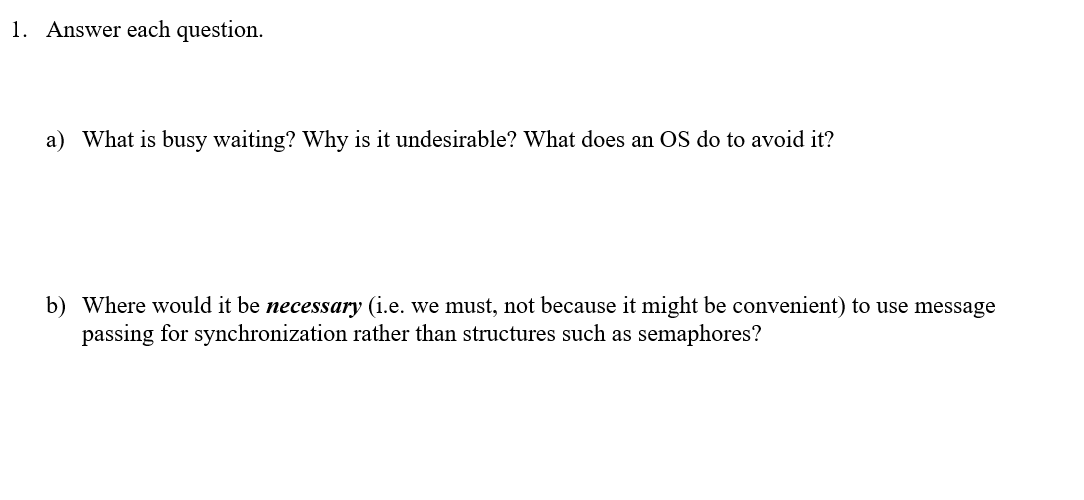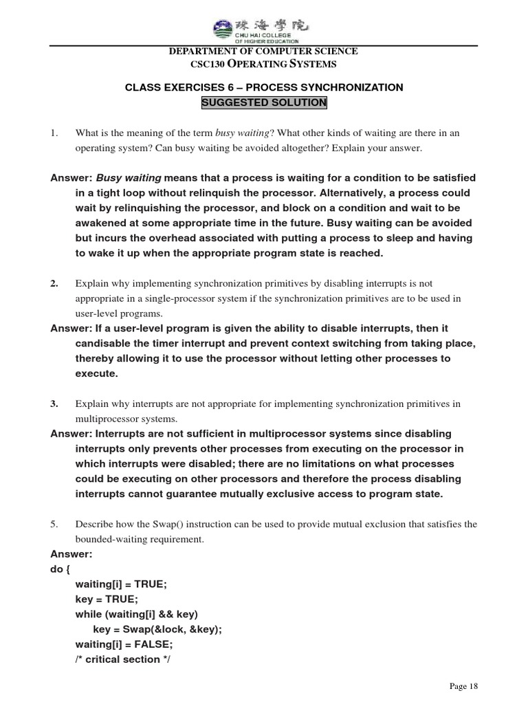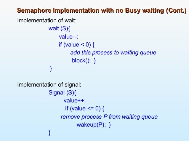 Student to give two problems with busy waiting in general Operating Systems G53OPS - Examination Graham Kendall It wastes CPU resources by sitting in a tight loop waiting for an event to happen. In Busy-wait problem processes waste CPU cycles while waiting to enter their critical sections. Busy waiting can be avoided but incurs the overhead associated with putting a. Even if the operating system knows a thread was busy waiting or spinning then also it is not known to operating system why the thread was waiting. Define count 0 items in the buffer 3. From this video you will be able to understand the concept of Semaphore Types And Busy Waiting in Operating SystemVideo Link For MutexClick Here. GOOD NEWS FOR COMPUTER ENGINEERSINTRODUCING 5 MINUTES ENGINEERING SUBJECT -Discrete Mathematics DM Theory Of Computation.
