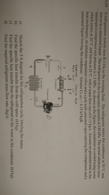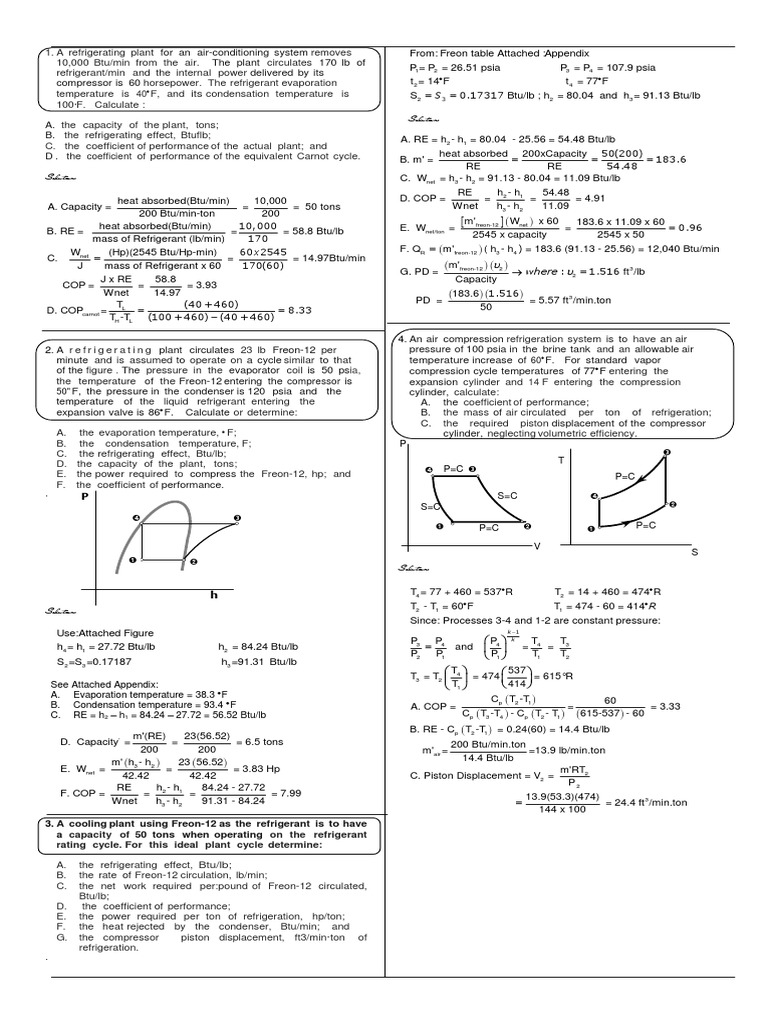 Refrigerant entering the compressor of a refrigeration system is a. The mass flow rate of the refrigerant is 008 kgs. A refrigeration system of 60 kW capacity at an evaporator temperature of 40C and a condenser temperature of 20C is needed in a food storage locker. The compression in the compressor is of adiabatic type.